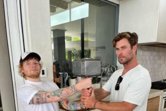 Ed Sheeran and Chris Hemsworth Pose…