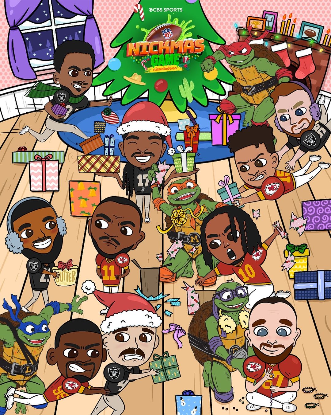 As part of the Christmas Day festivities, the NFL’s Nickmas cartoon not only promotes the Chiefs’ matchup against the Las Vegas Raiders but also adds a touch of whimsy to star players like Patrick Mahomes. The cartoon features Mahomes flying towards a Christmas tree, gift in hand, while a playful depiction of the Raiders’ Maxx Crosby attempts a tackle.